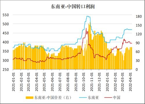 7. 一季度内地到华东价差全面收窄,目前内地到沿海套利窗口已难打开;东南亚-中国价差略增,但考虑到滞港、运费等因素,转口不多