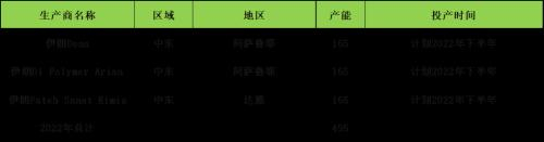 2022年,预计海外甲醇新增产能495万吨,三套装置均在伊朗且时间均在下半年。