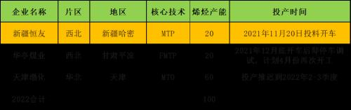 2022年,国内甲醇制烯烃计划新增产能100万吨,涉及甲醇理论需求330万吨。
