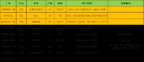 2022年需重点关注久泰二期200万吨投产进度,以及投产后实际生产甲醇量(去掉转产EG的量)。
