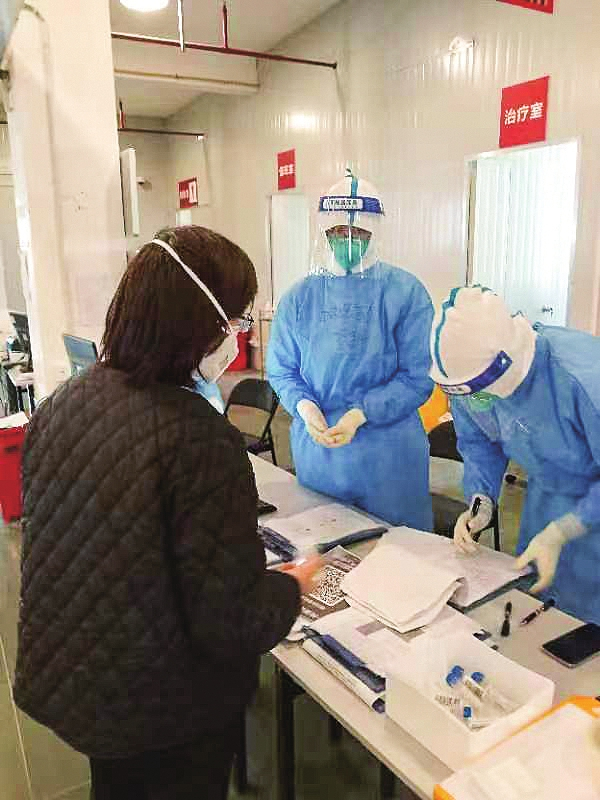 医护人员根据工作安排,6小时一个班,6个班组24小时分别轮转。航空总医院医疗组负责其中的2个班组。航空总医院医疗队副队长、主任医师李喜元介绍说,目前医护人员主要工作是定时巡查,询问了解患者身体情况,查看脉氧、体温等生命体征,针对患者病情进行治疗处理,对慢性病患者进行用药指导,对病情有变化有转入指征患者及时转入定点医院,保障方舱内患者生命安全。同时,医护人员还要完成核酸采样、三餐发放、患者焦虑情绪安抚等工作。