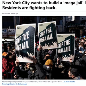 报道称。今年3月,数百名示威者举行集会反对该建造计划,批评者将这座监狱称为“超级监狱”。在此次集会上,抗议者在当地拥挤繁忙的街道上蜿蜒穿行,挥舞着标语,上面写着“不要新建监狱”和“停止超级监狱”。抗议人群主要是亚裔。