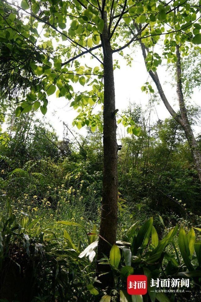 事实上,若没有这唯一的一朵花,即使是国家一级保护植物,眼前随意生长在村路边的珙桐树看上去也毫不起眼。在李成奎的讲述中,14年前,他从被压倒的珙桐树下拾捡枝条,扦插在离家不远的责任林里。原本生活在海拔700—2400米之间的珍稀植物,在临近生存下限的低海拔地区,居然存活长大,到如今,最大的已经粗如成人手腕,高约3米。