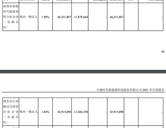 年报显示,宁德时代2021年末的前10名股东中,共有5名股东在报告期内减持,2名股东在报告期内增持。