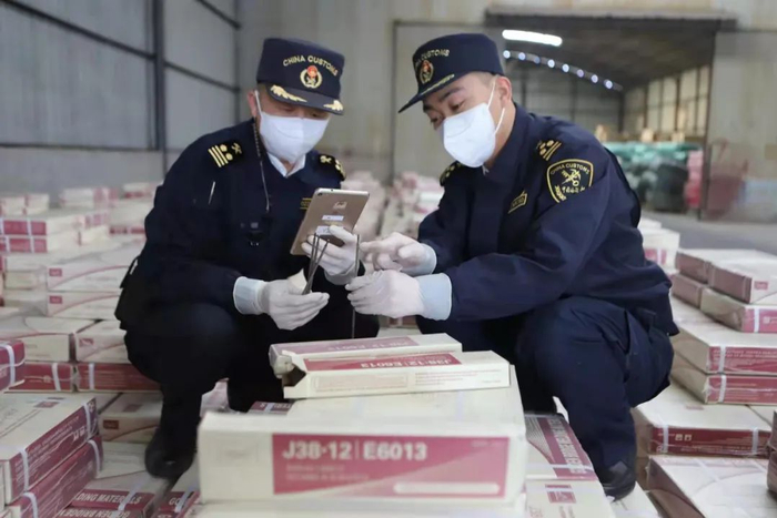 天津海关针对本地焊接材料产业发达但出口侵权频发的现状,开展行业专题调研并实施精准打击。2021年8月,成功查获南京某公司申报出口假冒“金桥”商标电焊条110余吨。该案是金桥焊材在海关总署备案以来,海关查获涉嫌侵犯其品牌的货物数量最多的一起侵权案件。