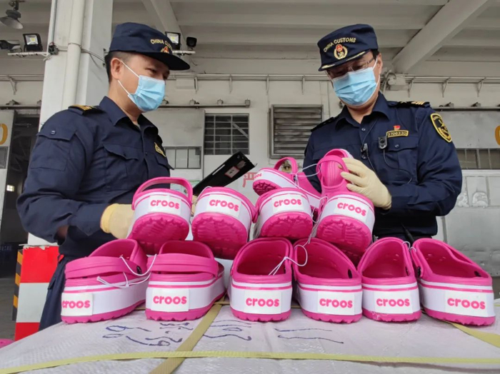 2021年4月,厦门海关在对晋江某公司申报出口的花园鞋进行查验时,发现其中有10200双花园鞋使用了“croos”标识。权利人认为上述货物与其在海关总署备案的“crocs”注册商标构成近似,并申请知识产权海关保护。海关依法扣留相关侵权嫌疑货物,调查后作出没收侵权货物并处罚款的行政处罚决定。在此基础上,厦门海关进一步梳理风险参数实施精准打击,连续查获3批次不同企业出口的使用“croos”标识的花园鞋共计27720双。