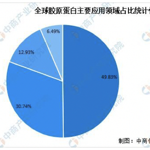 胶原蛋白约占真皮组织的95%,对皮肤年轻化意义重大。Grand View Reaserch数据显示,2021年全球胶原蛋白市场规模将达到164.01亿美元。2019年全球胶原蛋白医疗健康领域市场规模在市场总规模中的占比为49.83%,而护肤品领域占比不到13%,发展空间有望进一步提升。