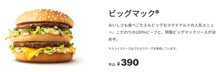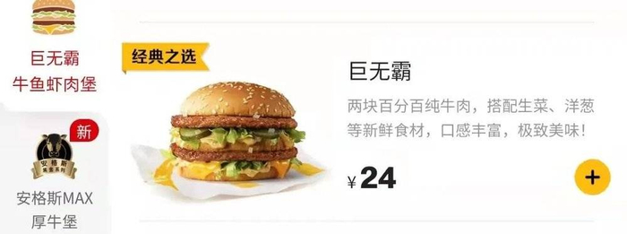 而中国麦当劳点餐小程序上巨无霸的价格为24元,约为472.7日元。