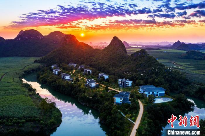 中新网崇左4月22日电(记者 杨志雄 黄艳梅)群山环绕,绿树苍翠,水波灵动……走进位于广西崇左市扶绥县上龙大道的中国·乐养城,空气清新,鸟语花香,静谧秀美的风光俨如一幅富有诗意的山水画卷。