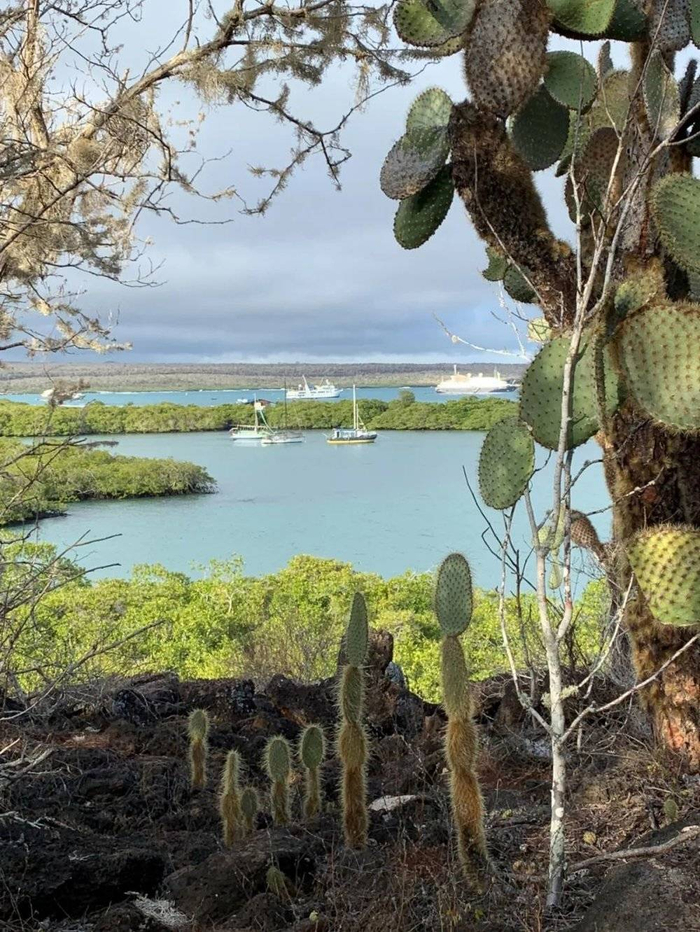 我们在伊莎贝拉岛住了3晚,圣克鲁兹岛2晚。5天中,一共访问了5-6个大小岛屿。看到巨龟、企鹅、海狮、蓝脚板鲣鸟、鬣蜥、白顶鲨、达尔文雀、鹈鹕、加拉帕戈斯鹭、海马等,其中的一些物种为岛上独有。我还与海龟、鬣蜥等共泳。景色最美的是伊莎贝岛孔道的火山岩浆区,那一天的活动也最丰富多彩。如果有机会再来,我会选择浮潜一次,去西摩(Seymour)岛观鸟。在高地上走更多的步道,了解更多的植物。