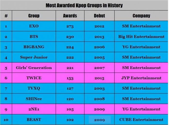 2NE1被称为“女版BIGBANG”,“怪物新人”的称号也始于她们。2009年刚出道时,2NE1就直接威胁到了少女时代的地位,并在各项数据上取得了领先,已经有资格问鼎历史最佳音源女团。 从《Lollipop》的梦幻色彩,到《Fire》喷薄而出的强势,再到《I Don't Care》爱情中女孩的样子,2NE1凭借这三首歌曲共取得13个周冠、31周前十,分别位于年榜的2、8、10位,在仅仅几个月之内稳固了在歌谣界的位置。
