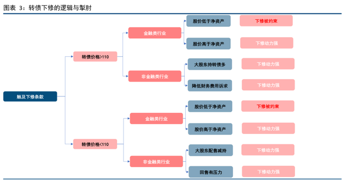 转债价格也是重要考虑因素。在转债价格较高的情况下,除了金融类发行人有意降低强赎门槛外,其他行业被动下修的逻辑被一定程度削弱。