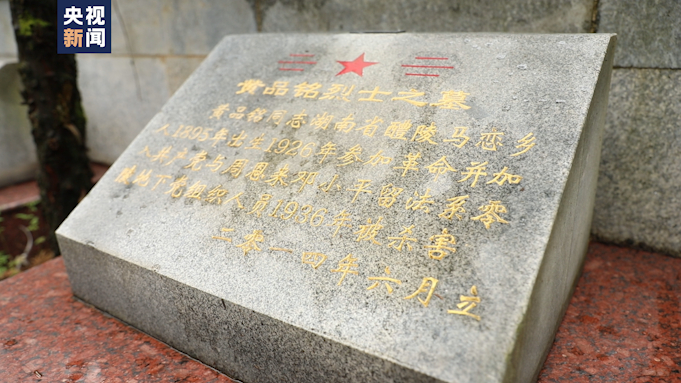 墓碑上写着:黄品铭同志,湖南省醴陵马恋乡人,1895年出生,1926年参加革命并加入共产党,与周恩来、邓小平留法,系零陵地下党组织人员,1936年被杀害。