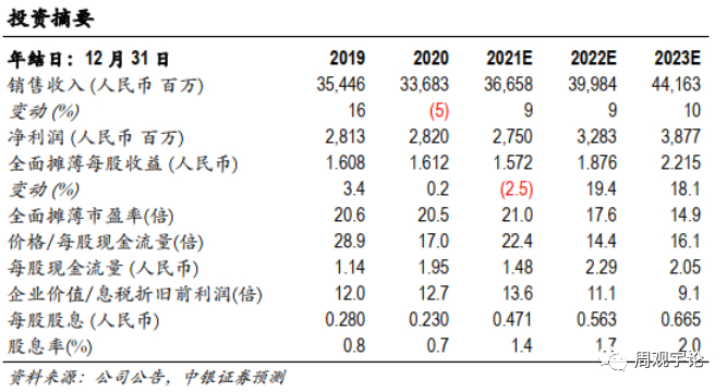 预期 2021,2022,2023 年公司归母净利润为 27.50 亿元,32.83亿元,38.77亿元,EPS 分别为 1.57 元,1.88元,2.22 元,首次覆盖给予买入评级。