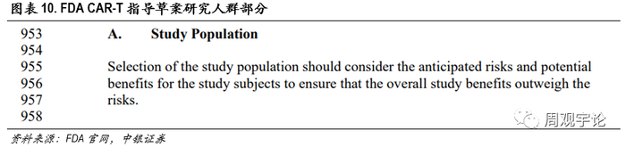 在3月15日,FDA发布了CAR-T药物研发指导草案《Considerations for the Development ofChimeric Antigen Receptor (CAR) T Cell Products》,研究人群章节指明“受试人群的选择应考虑预期的风险和潜在的获益,以确保整体的收益大于风险”。此次草案对受试者提供了更好的保护,增加了方案的完整性,让CAR-T疗法的研究上更加规范。