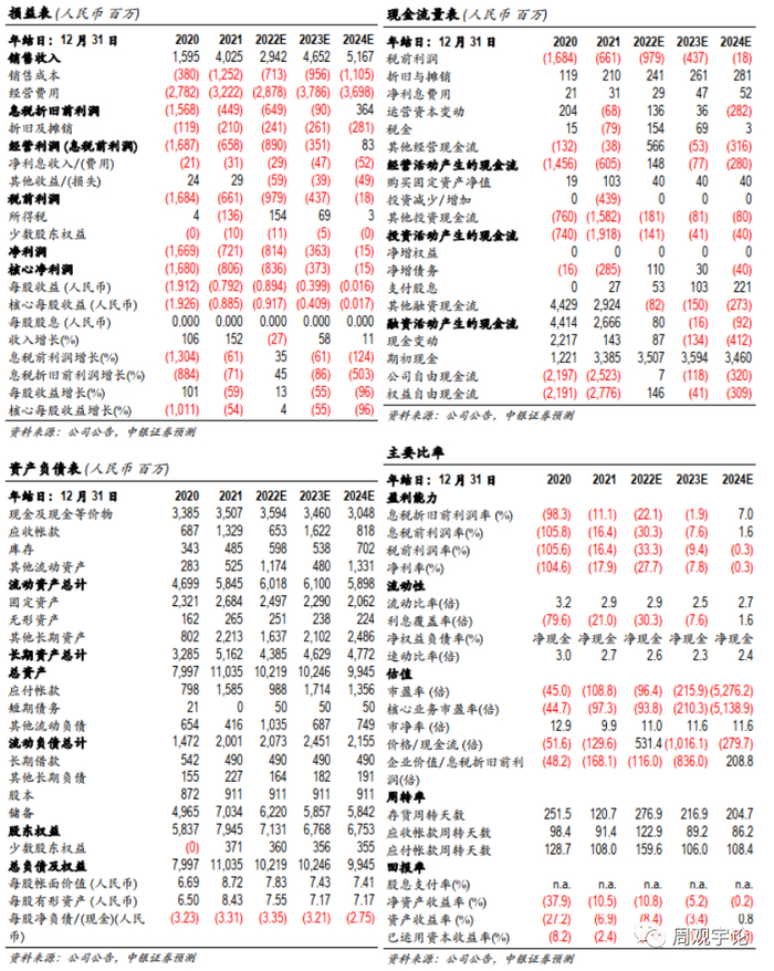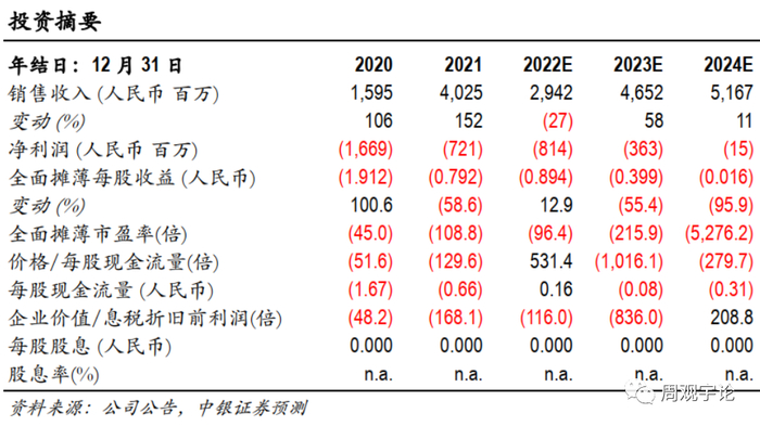 预期 2022,2023,2024 年公司归母净利润为-8.14 亿元,-3.63亿元,-0.15亿元,EPS 分别为-0.894元,-0.399元,-0.016 元,首次覆盖给予中性评级。