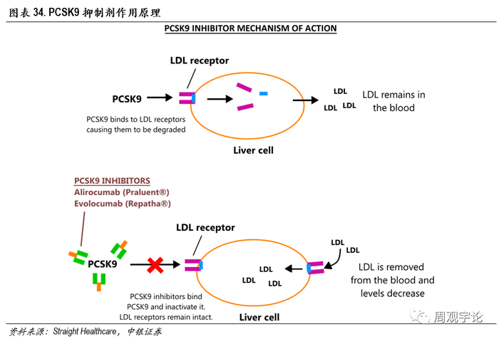 PCSK9单抗降血脂新机制。JS002 是君实生物自主研发的注射用重组人源化抗 PCSK9 单克隆抗体,与他汀类药物抑制胆固醇合成的机理不同,PCSK9 抑制剂是增加胆固醇的清除,稳定低密度脂蛋白受体(LDL-R)的数量,从而加速清除体内已经合成的胆固醇。目前全球范围内已上市两个PCSK9单抗药物,国产PCSK9抑制剂方面,君实的JS002仅次于信达的IBI306进入III期临床,进展较快。2021年,公司JS002联用PD-1特瑞普利单抗治疗实体瘤的方案获批临床,证实PCSK9在肿瘤治疗方面或许有一定潜力。