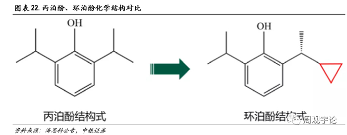 环泊酚临床表现较丙泊酚更优,进医保成功,2022年有望超4亿元销售。环泊酚是海思科第一个获批的1类新药,为GABAA受体激动剂。环泊酚的对标产品——丙泊酚,是静脉麻醉镇静领域的王牌产品,1989年获FDA批准上市,1994年在中国获批。自上市以来就牢牢占据注射用麻醉静药领域的统治地位。仅在2020年,丙泊酚相关剂型全球销售额达到约13.96亿美元。