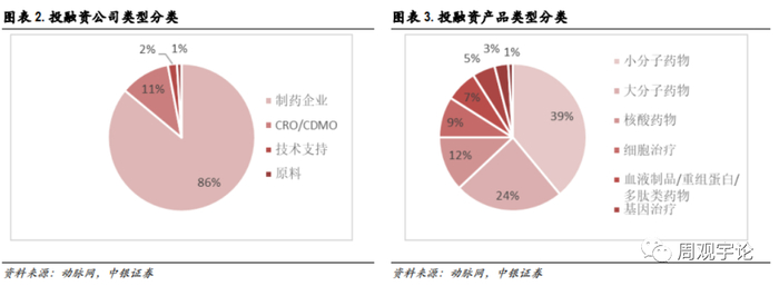 国内融资超千亿,医药领域热度不减。2021年国内融资事件及金额较2020年进一步增长,达到了533起和1113亿元。大分子和小分子药物仍占大比重。新兴biotech企业不断涌现,融资需求仍旺盛。