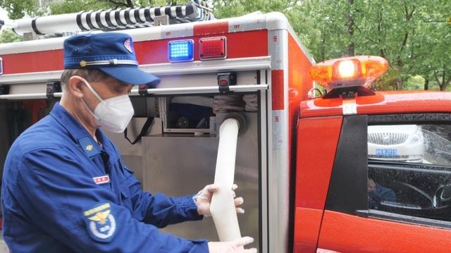 康桥镇沿南微型消防站站长邵德贤告诉记者,每天从上午8点开始,队员们就会在镇内进行消杀与宣传,重点关注沿街商铺、各小区、农村自建房、城中村等地区。每次出发前,消防员都会提前将消防车水箱灌满消毒水,并准备好消毒片,以便随时补充。