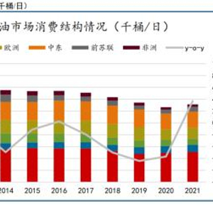 2021年全球燃料油消费预估量为656万桶/日,合计一年3.4亿吨左右。据统计,近年全球公开贸易的燃料油数量在3-4亿吨左右,而船用燃料油的消费量达到2.8亿吨,占比高达七成以上,因而成为燃料油的主要消费用途。过去十余年里亚太和中东地区燃料油消费占比领先、且提升最快,2021年两个地区分别占全球燃料油总消费的39%和21%。
