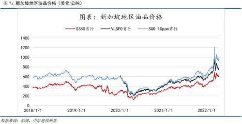 就船用燃料油的消费结构来看,低硫燃料油大面积抢占高硫燃料油的市场份额。自2020年初经历了高低硫切换后,新加坡低硫燃料油、高硫燃料油和MGO消费占比分别为52%、26%和8%;国内市场在燃油出口退税政策实施以后,低硫燃料油消费占比约80%,高硫消费占比不足10%,目前全球船燃市场整体结构逐渐趋于稳定。