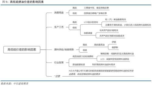 结论:1、燃料油消费用途方面:船用油占比超七成,低硫是船舶主要消费品;2、燃料油生产工艺:高硫调和标准严,低硫调和配方数量多;3、高低硫燃料油的价格(裂差)关系:高硫<;低硫<;柴油:4、高低硫燃料油价差走势的四个影响因素:消费用途的差异、生产工艺的差异、原料供给的差异、行业政策实施影响的差异。
