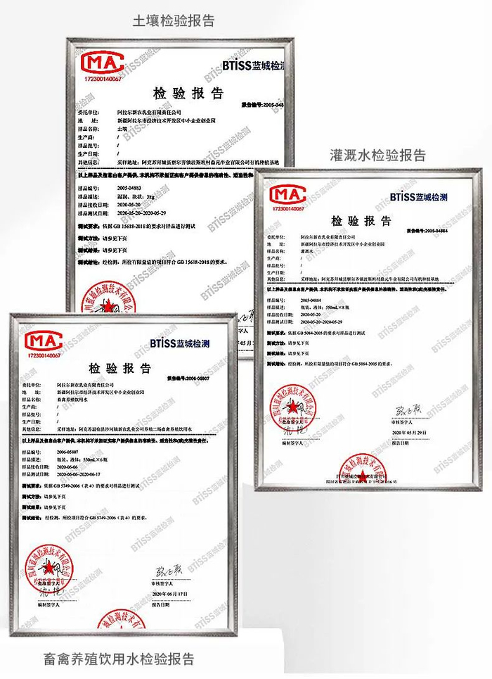 自有牧场的土壤、灌溉水、饮用水均通过第三方专业机构的安全检测,确保奶牛的健康生长。