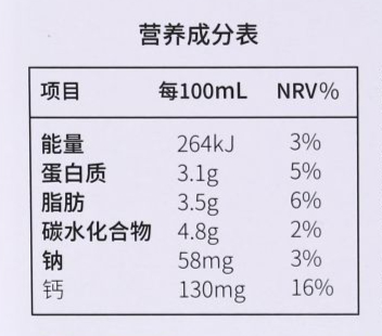 每100mL“天上天山”纯牛奶的钙含量为130mg,NRV值高达16%!