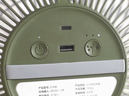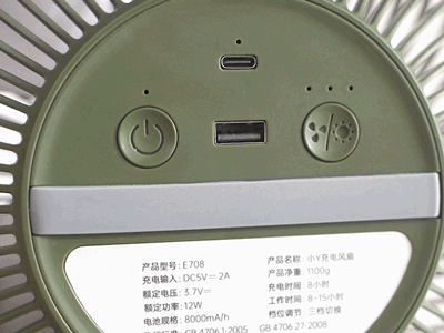 风扇背面还有一个USB接口,电子设备没电时,风扇就相当于是个移动充电宝。