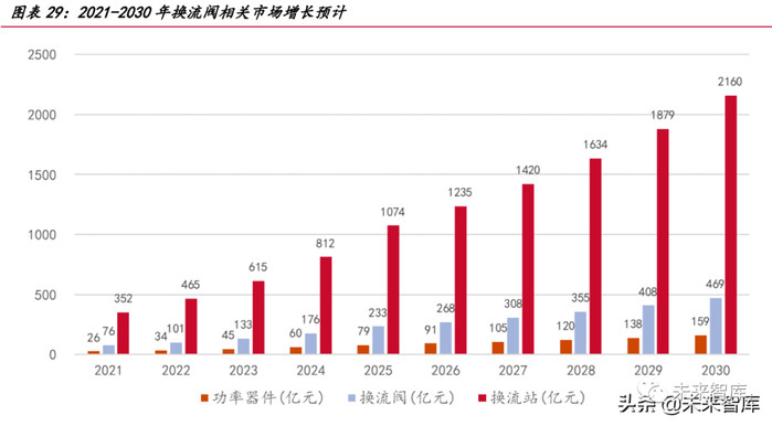 大功率 IGBT、大电流晶闸管、直流输电用金属化薄膜电容器价值含量较高,我 们预计未来 10 年功率器件和直流电容将分别形成约 800 亿的市场规模,其中十四五 期间有望分别形成约 250 亿的市场规模。