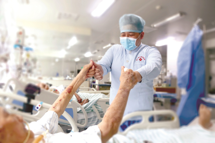 新安重症监护室里,护士小胖正在给爷爷加油打气,给予温暖的陪伴。