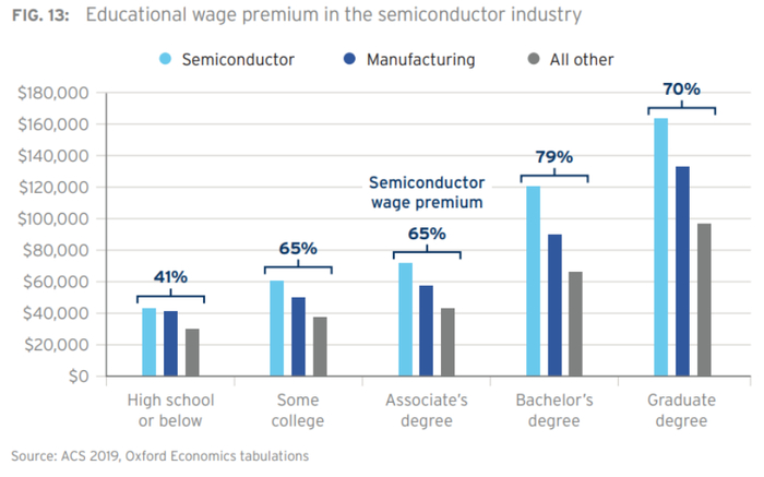 半导体薪资水平已经与互联网等科技领域不相上下,但半导体行业有五分之一的岗位无需大学学历。