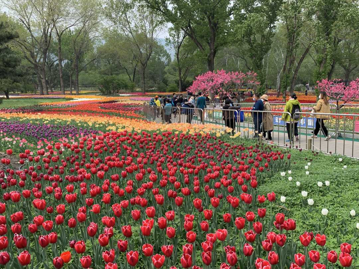 图为游客参观北京植物园的郁金香花花展。本报记者 李佳霖摄