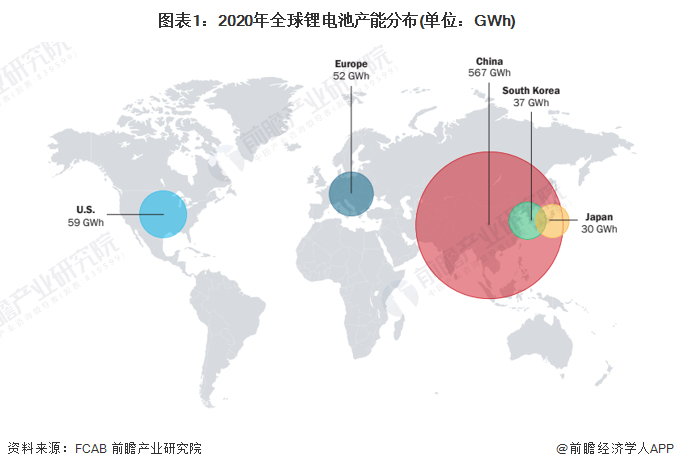 长期以来,许多发达国家把电动汽车列为主要攻克的目标,美国支持多个国家实验室和企业一起承担车用锂离子电池的开发工作。欧盟则制定了高比能量蓄电池的发展计划,采用规划和计划的手段,保证了基础研究的连续性,并不断产生出阶段成果。日本在锂离子电池领域具有垄断地位,索尼、三洋电机、松下电池、NEC等著名公司都建有大规模锂离子电池生产厂,而且大多数制造商除了保持和扩大原有品牌的产量外,都在利用各自的优势开拓锂离子动力电池新产品。总的来看,日本仍然是动力锂离子电池技术领先的国家,其动力锂离子电池及其关键材料量产技术已经成熟,性能已几乎满足电动汽车需求。而美国在锂电池生产布局上略有落后于亚洲国家,根据FCAB的数据,2020年全球锂电池产能约747GWh,中国市场占比76%。美国市场仅有59GWh,占比8%。