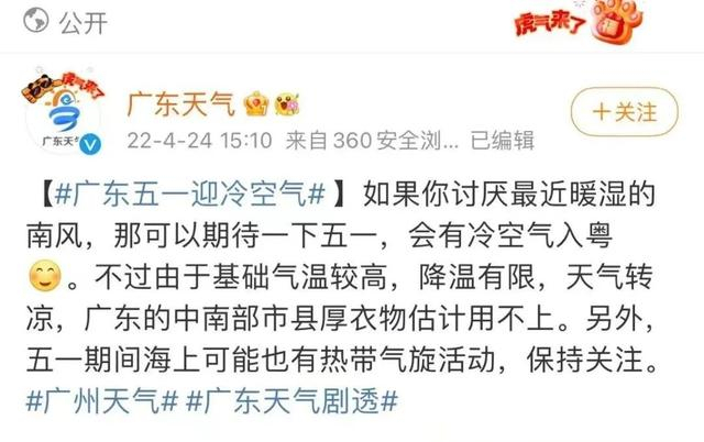 据广东天气微博,