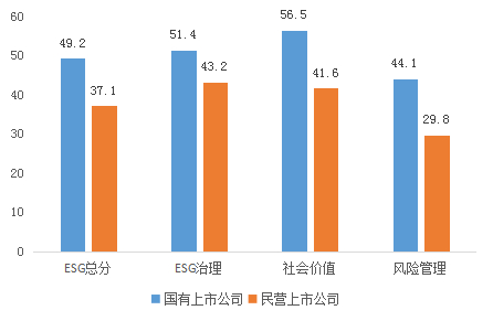 1.国有乳制品上市公司ESG指数(49.2分)显著高于民企(37.1分)。