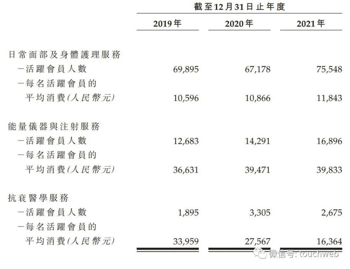 美丽田园2021年日常面部及身体护理服务活跃会员数为75,548人,每名活跃会员的平均消费为11,843元;