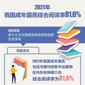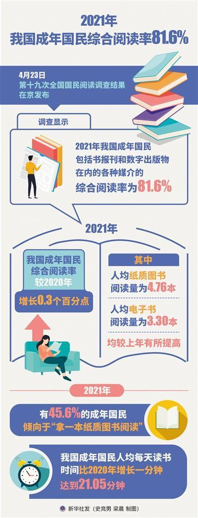 2021年我国成年国民综合阅读率81.6% 人均纸质书阅读量为4.76本