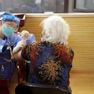 4月20日,在上海市奉贤区西渡街道社区党群服务中心,老年居民在接种新冠病毒疫苗。新华社 图
