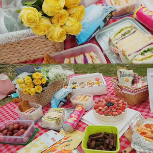 以上仅仅是初级装备,而且在电商平台常见有打包销售的套餐出售,两三百元即可购入一套含餐篮、餐布、餐具等在内的全套用品。东西都差不多,区别在于每个人的审美不同,以及对细节的把控也不同。“比如野餐布这个点,我见到过有人还专门带了胶带固定四角,还有人买的大小也比较适中。”絮絮说,照着网上给的野餐清单买没错,但可能会出现意外情况,“蛋糕非常容易化,要尽快拍完照吃掉。”