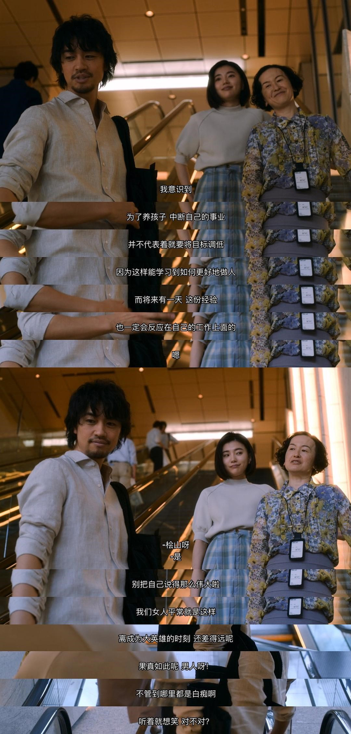 视角继续回到亚季这头,独立女性喜当爹的设定简直太适合上野树里了。虽然言辞里含“渣”量不低,但性别对调之后,也能看出创作者对于生育分工和性别角色议题讨论的野心。