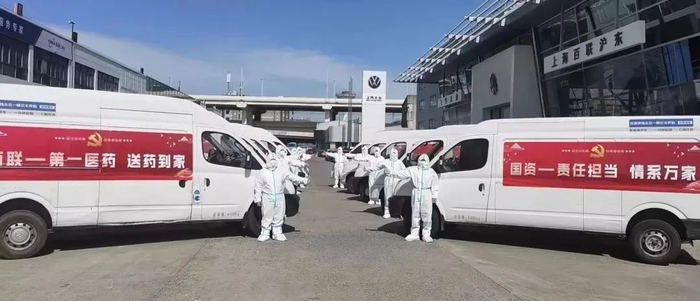 百联集团协调旗下企业特派10辆保供车辆支援第一医药,以保障门店及时补货,保证最后3公里触达流畅。