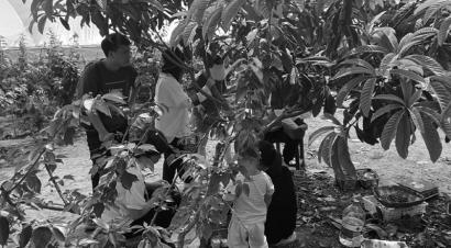 樱桃采摘园的游客