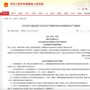 (最高人民法院发布2020年度中国法院知识产权十大案件,图源:官网)