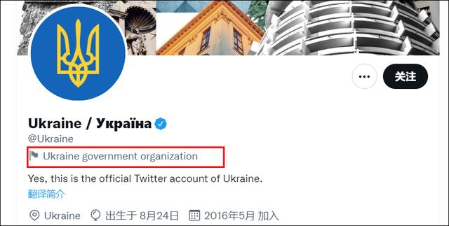 观察者网查询发现,涉事的乌克兰账号为“Ukraine / Україна(乌克兰)”,推特官方将其认证为“乌克兰政府组织”。