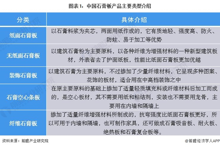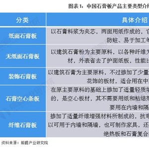 从石膏板产品类型来看,我国生产的石膏板主要有:纸面石膏板、无纸面石膏板、装饰石膏板、石膏空心条板、纤维石膏板等。