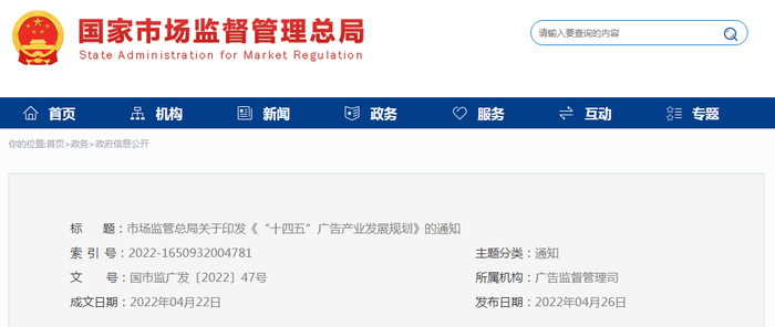 市场监管总局关于印发《“十四五”广告产业发展规划》的通知