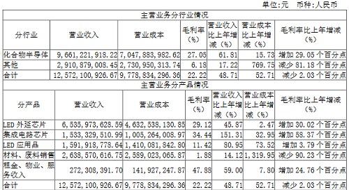 2021年,三安光电LED外延芯片共实现营业收入65.36亿元,同比增长45.87%;毛利率为29.12%,同比增加30.02个百分点。