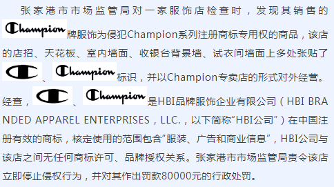 案例5 某服饰店侵犯Champion系列注册商标专用权案